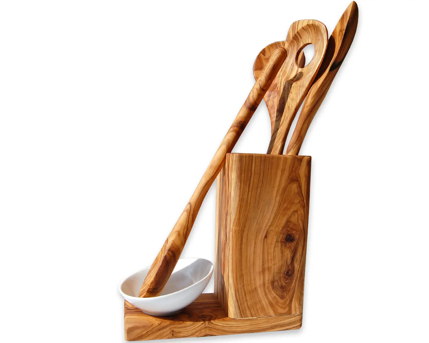 Size: Spoon – 12″ long; Ceramic Rest – 3.9″ diameter, 2″ tall;