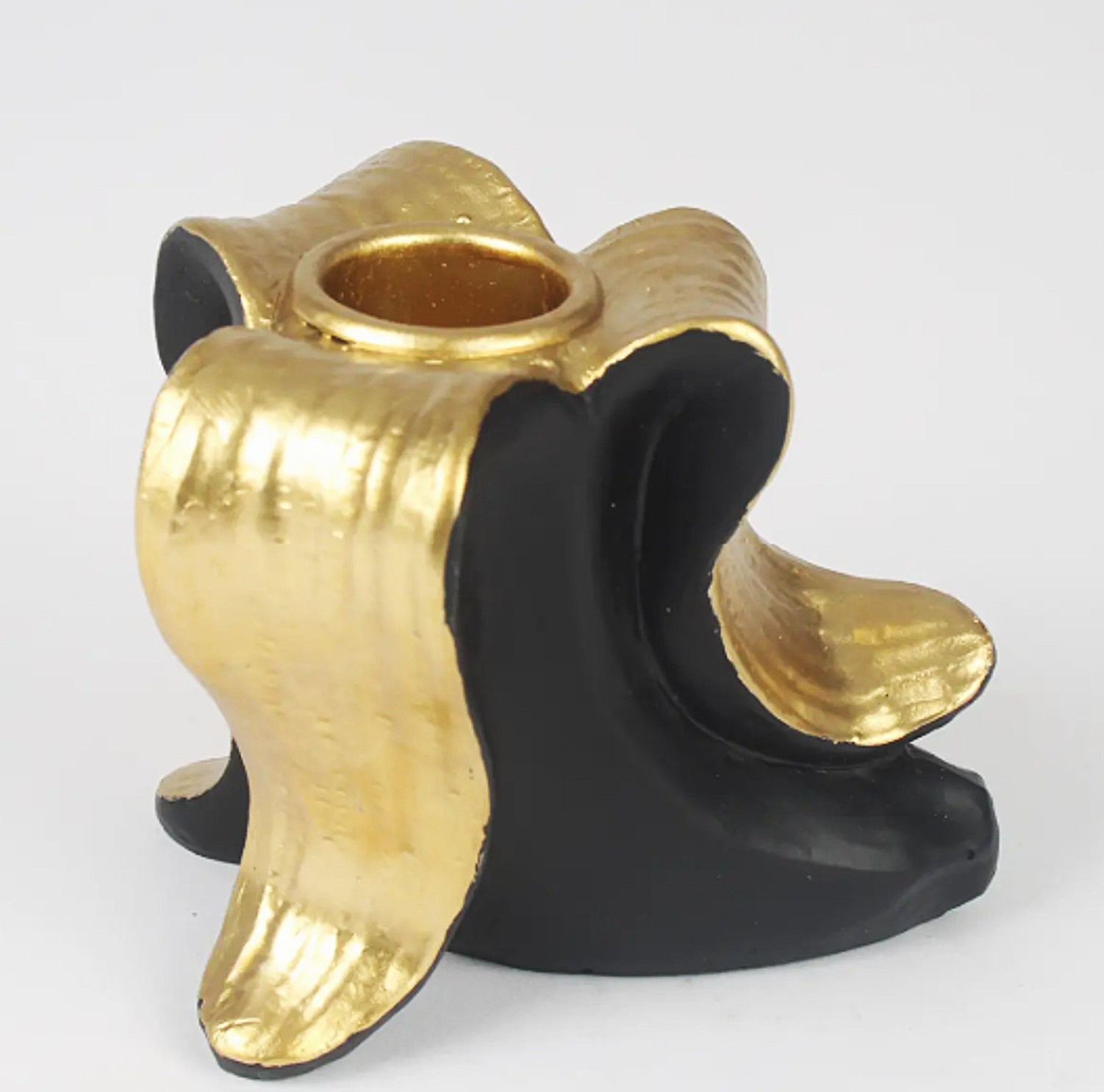 2 Pcs. Set Black & Gold Banana Tapered Candle Holder