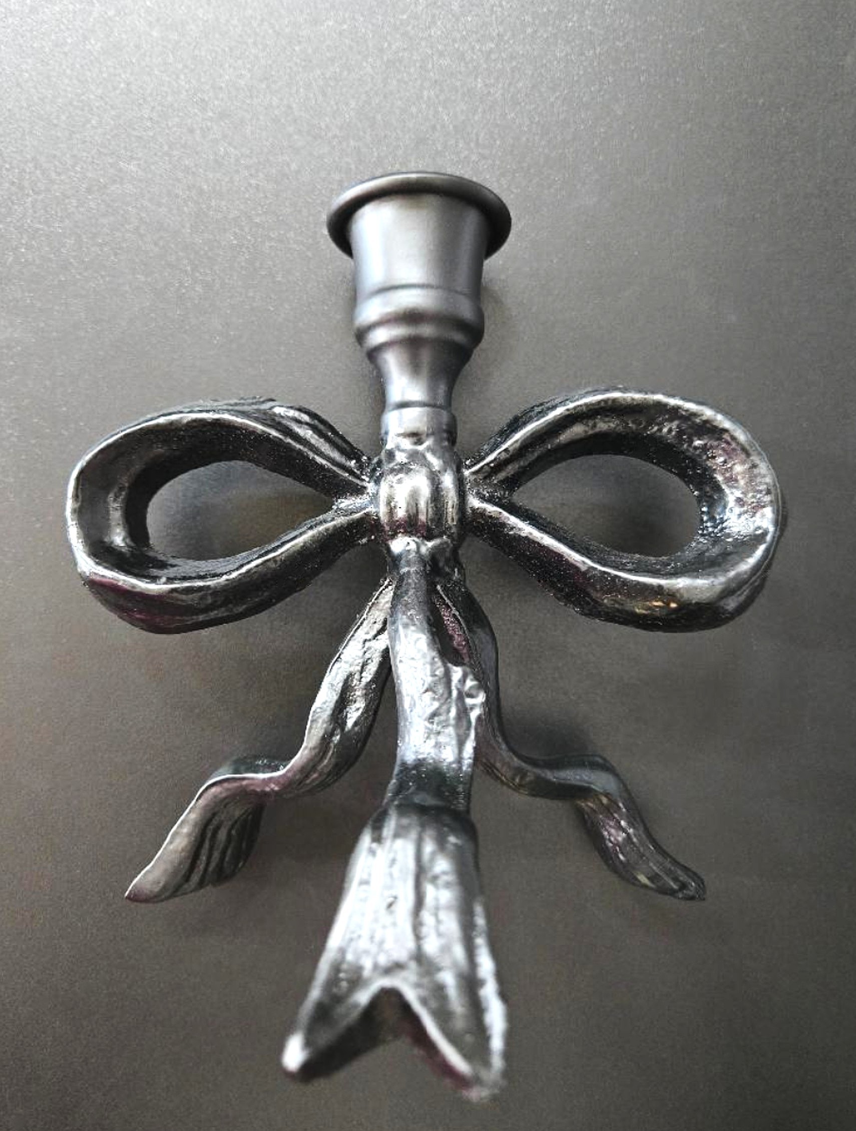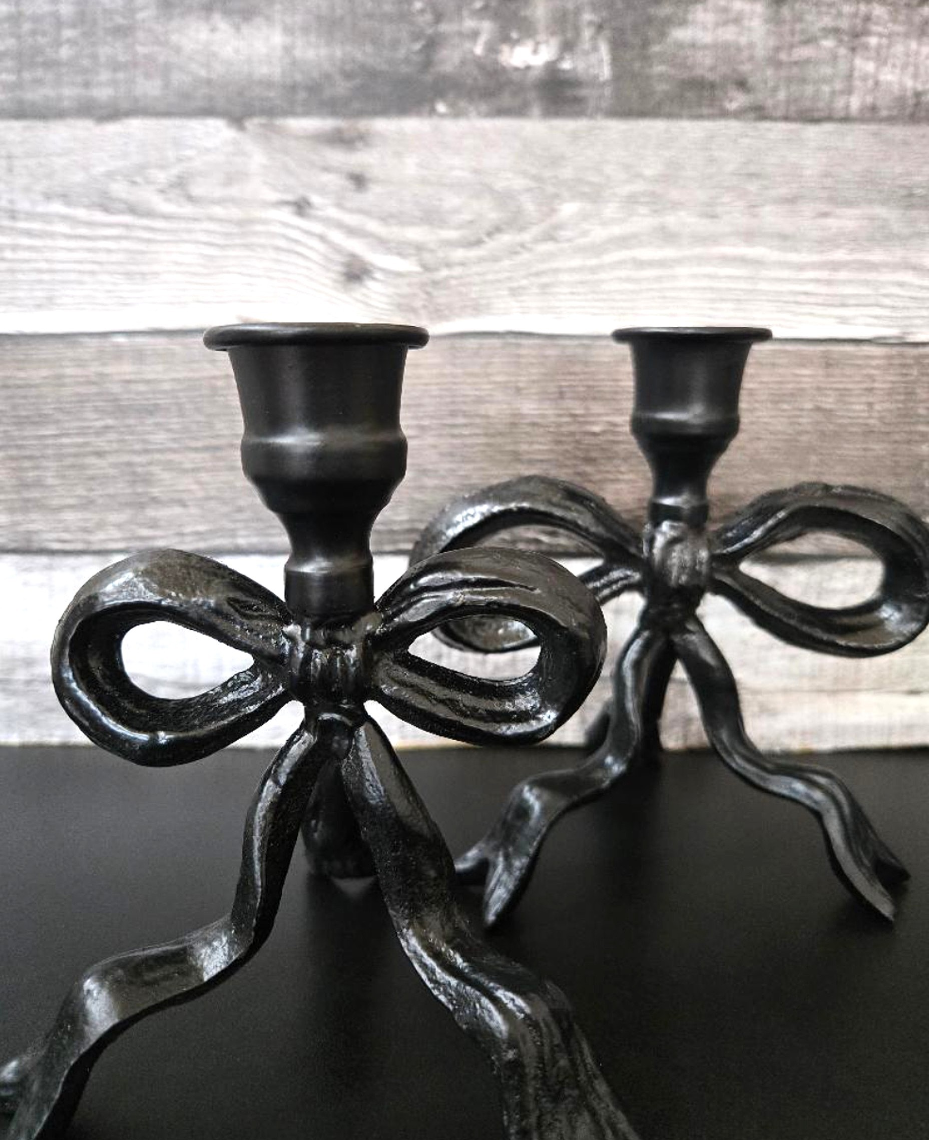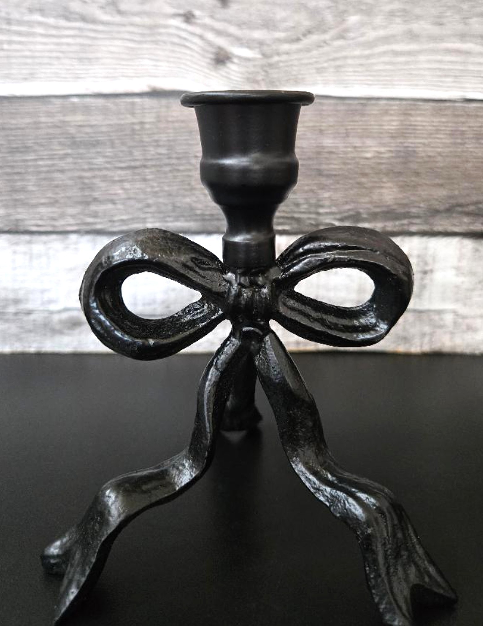 / Black Metal Bow Tapered Candle Holder 2 Piece Set