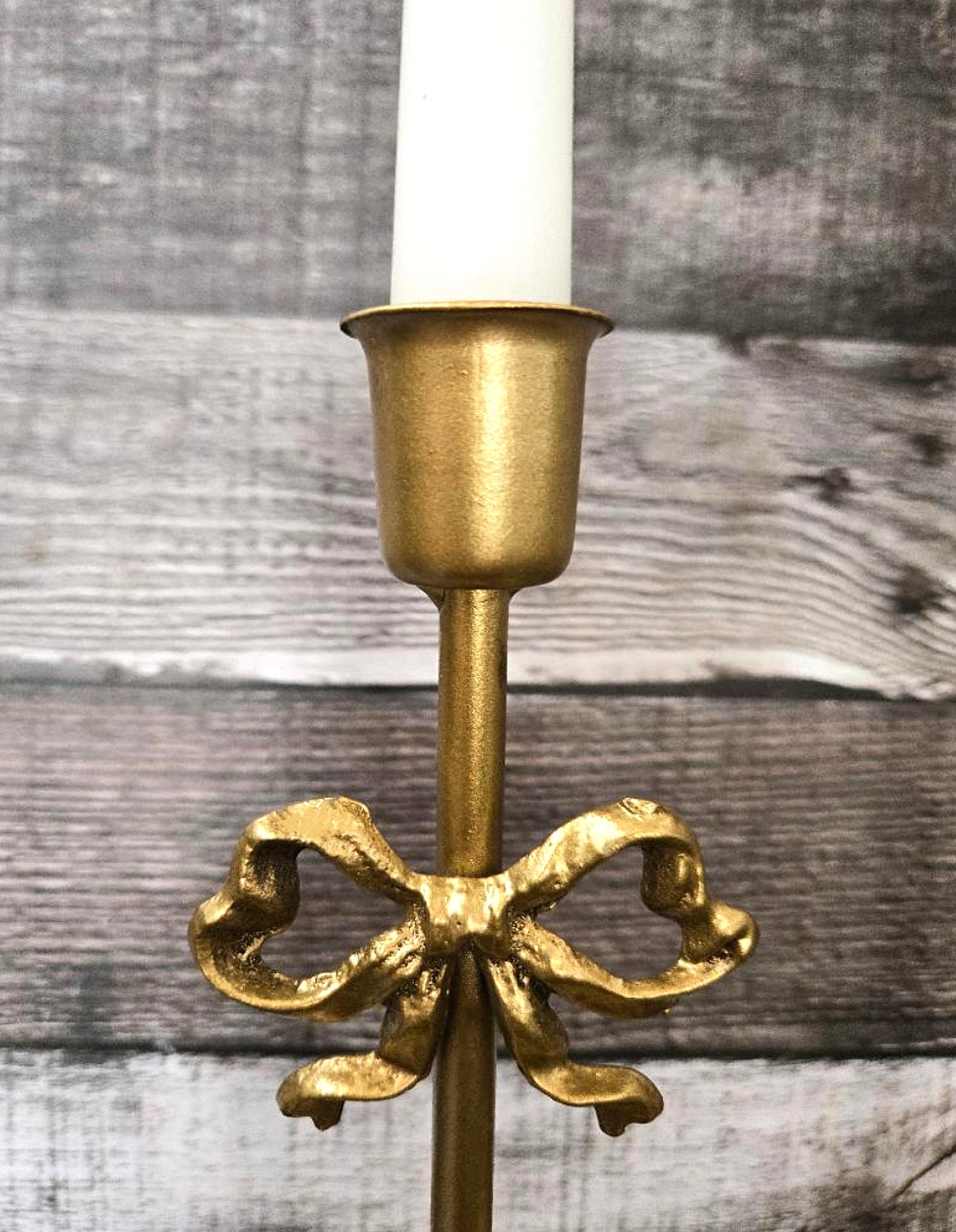 / Bronze Metal Bow with Pedestal Tapered Candle Holder 2 Piece Set