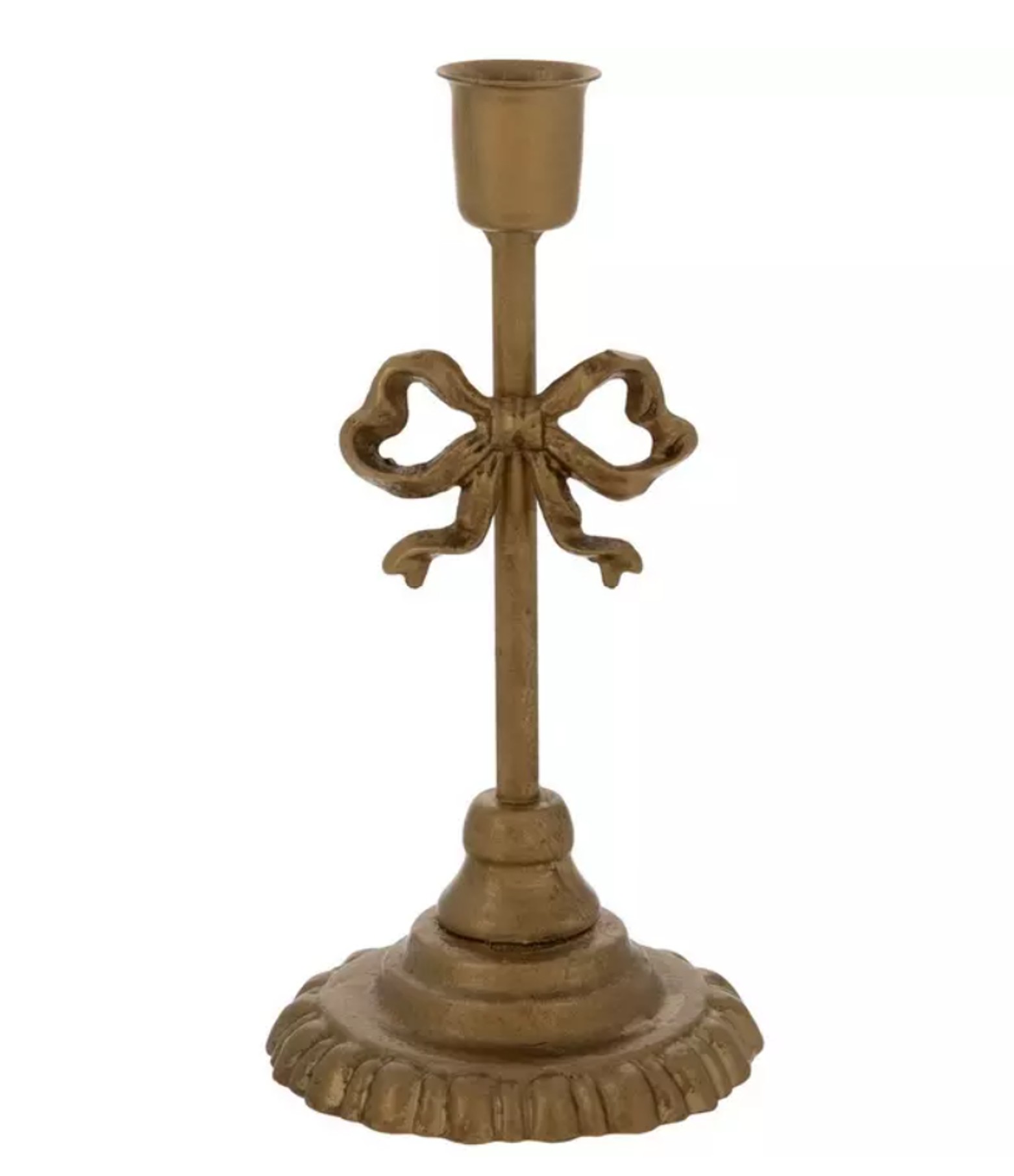 Bronze Metal Bow with Pedestal Tapered Candle Holder 2 Piece Set