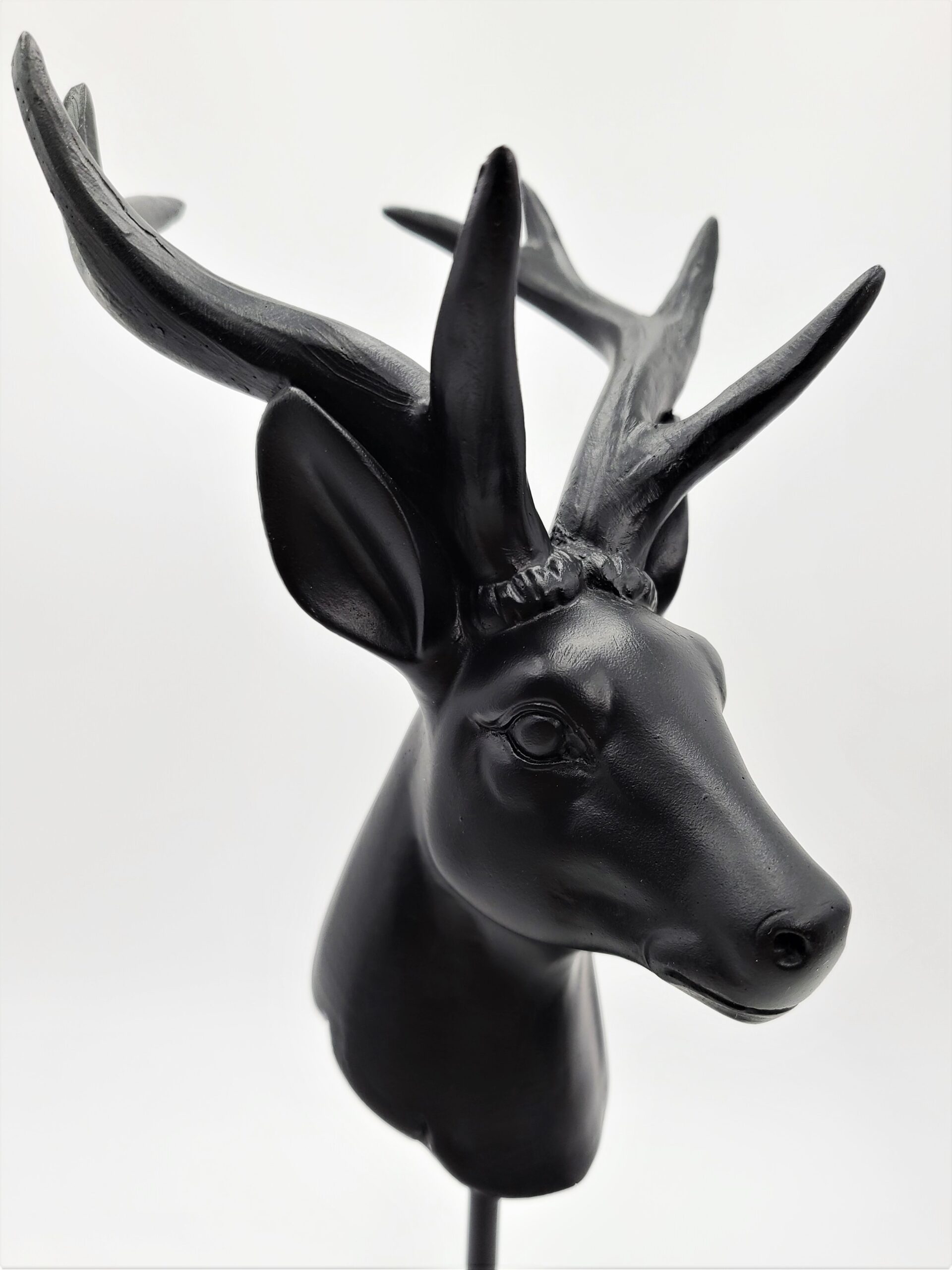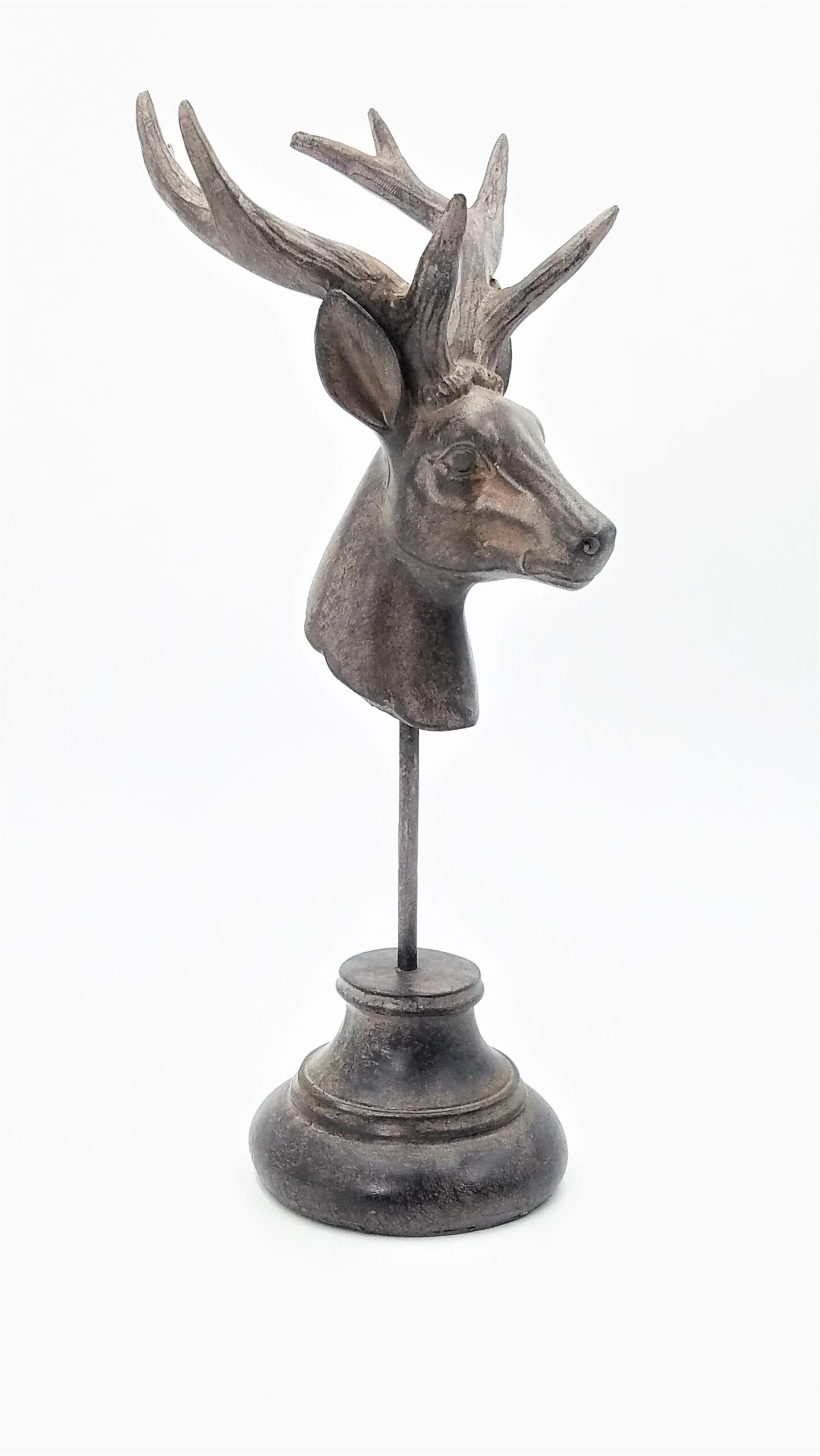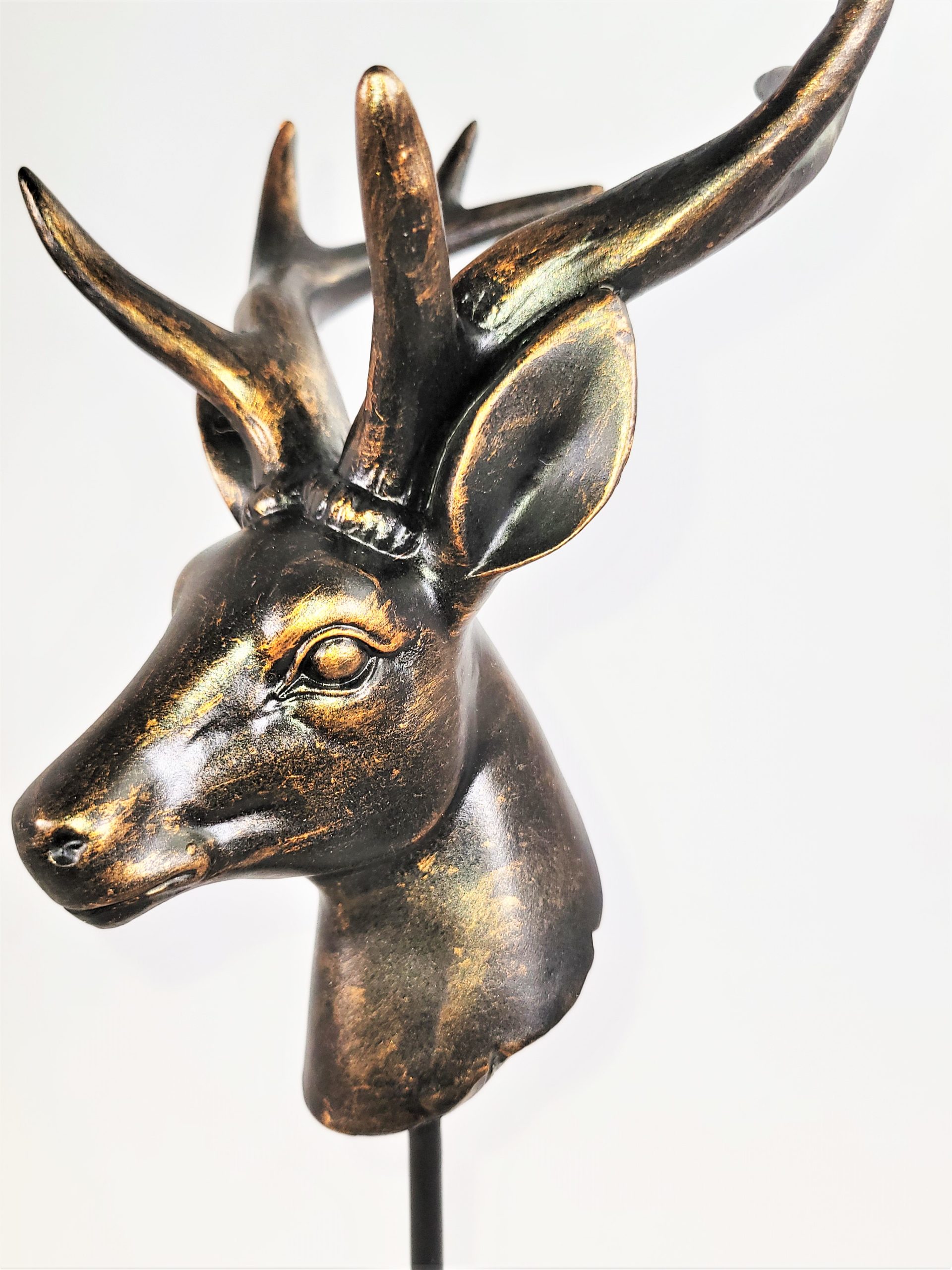 Buck statue designed and crafted with high attention to detail. Add a natural look to your home with this lifelike deer head statue mounted on a pedestal.