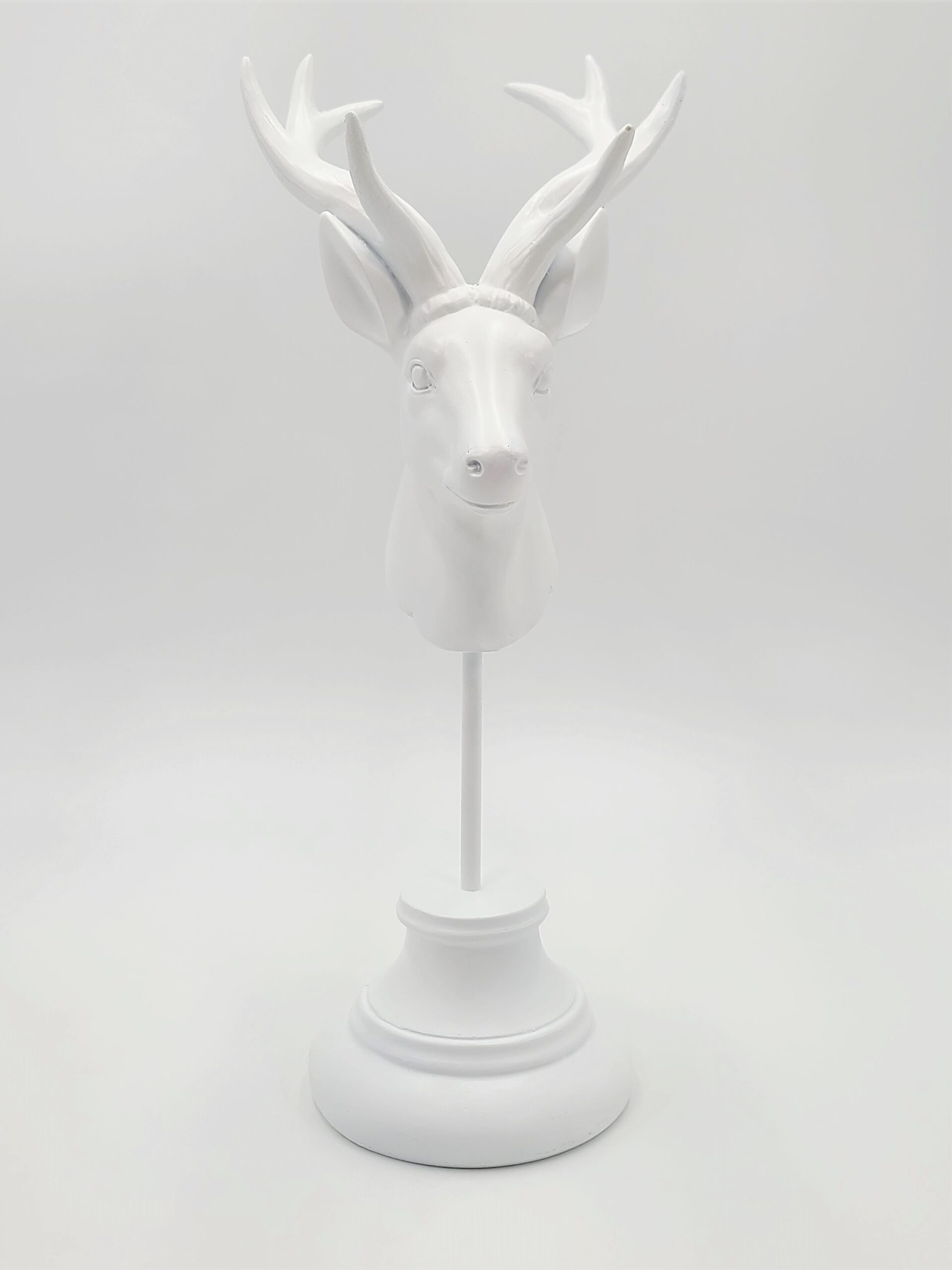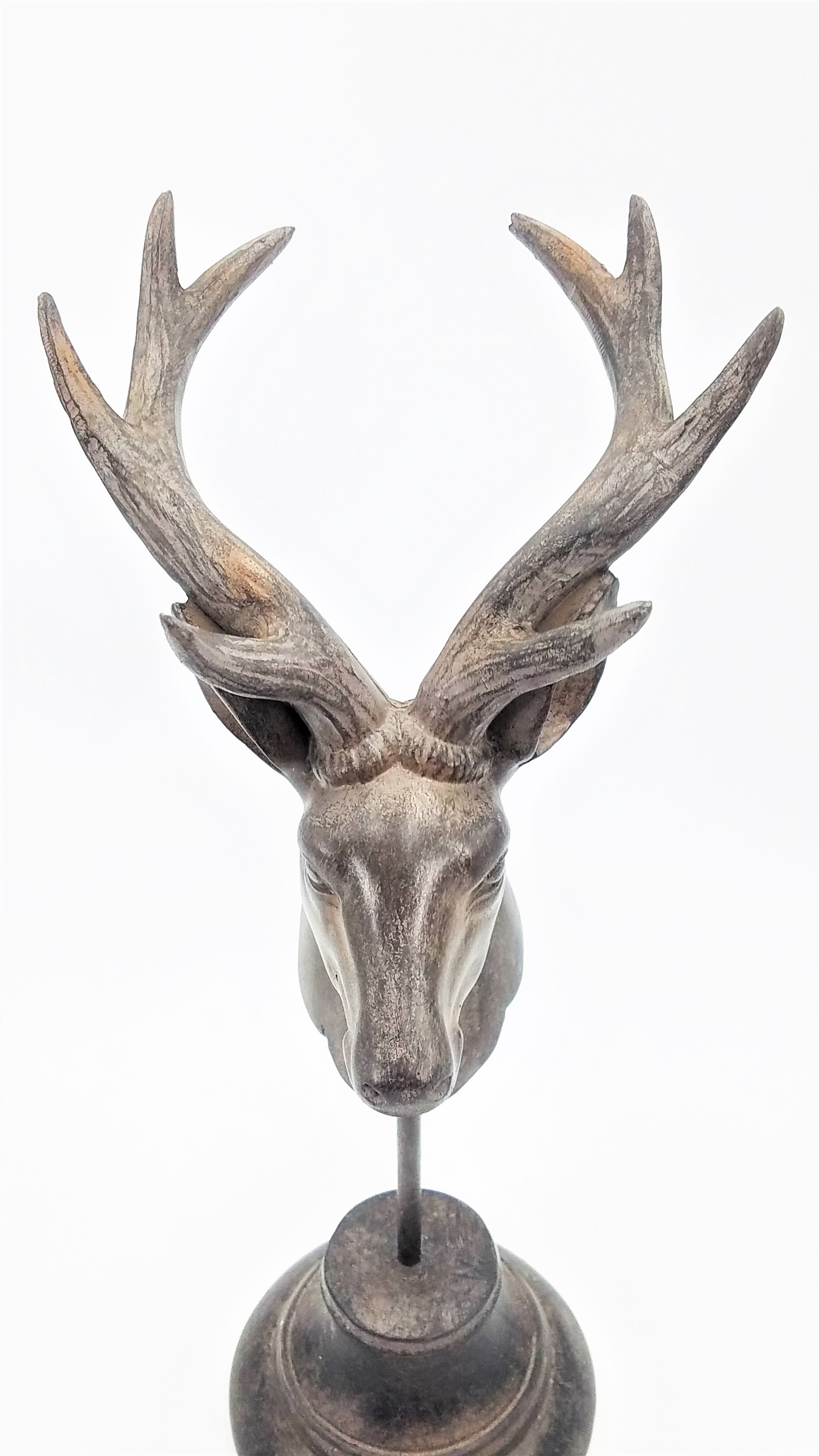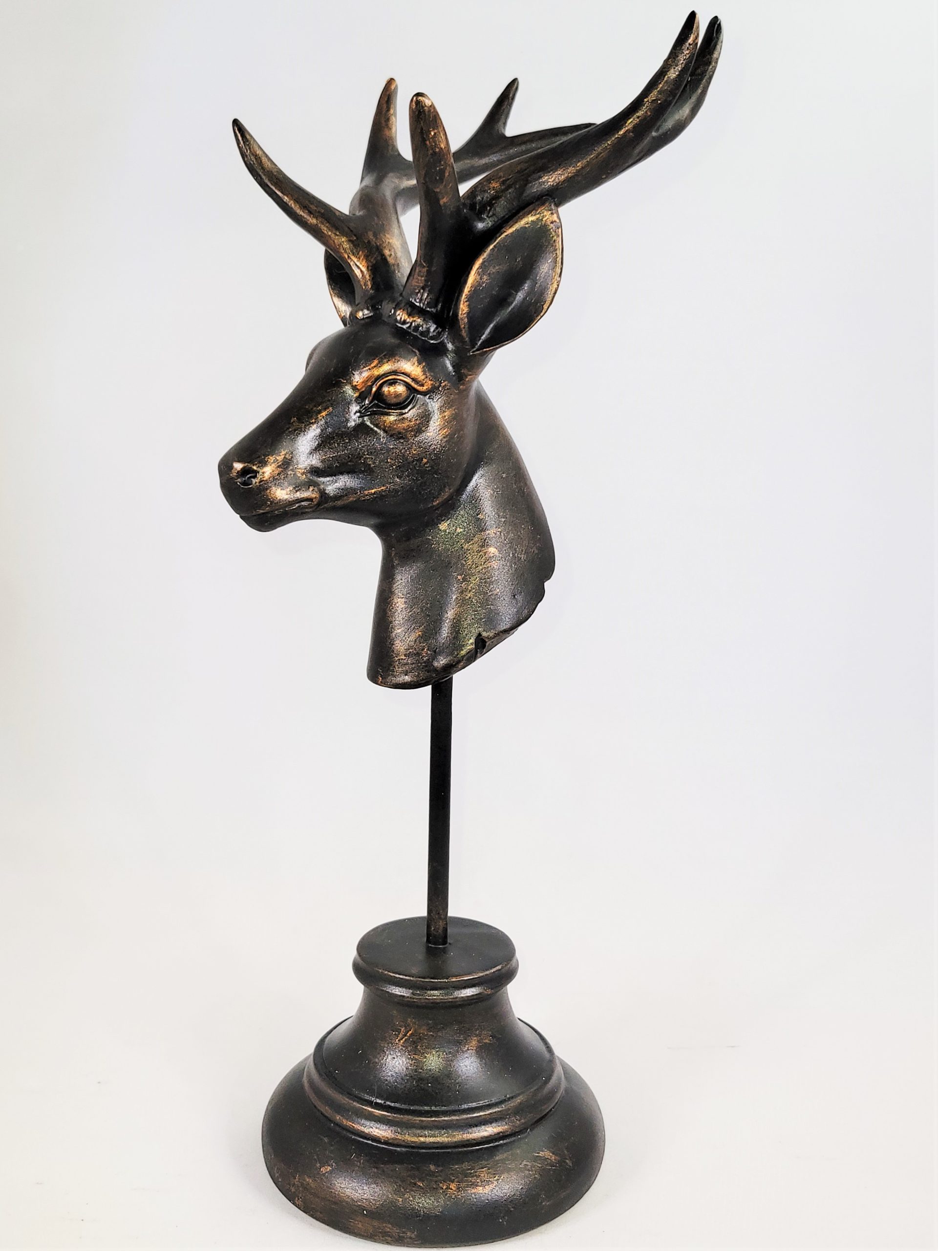 Buck statue designed and crafted with high attention to detail. Add a natural look to your home with this lifelike deer head statue mounted on a pedestal.