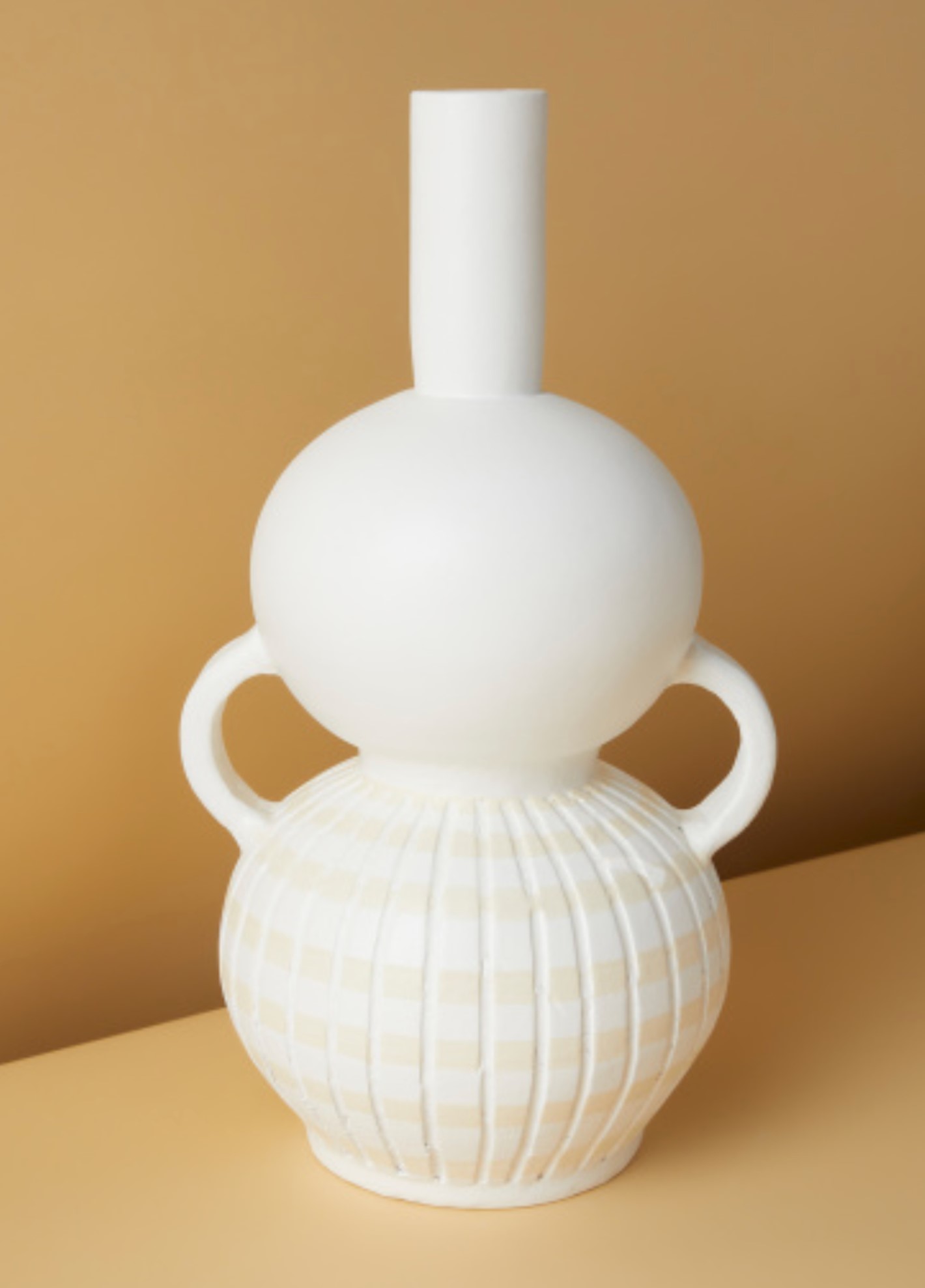 Set of 2 White Flower Pots with Metal Holder and Elevated Rings