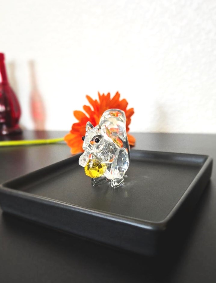 / Crystal Squirrel with Black Square Jewelry Dish