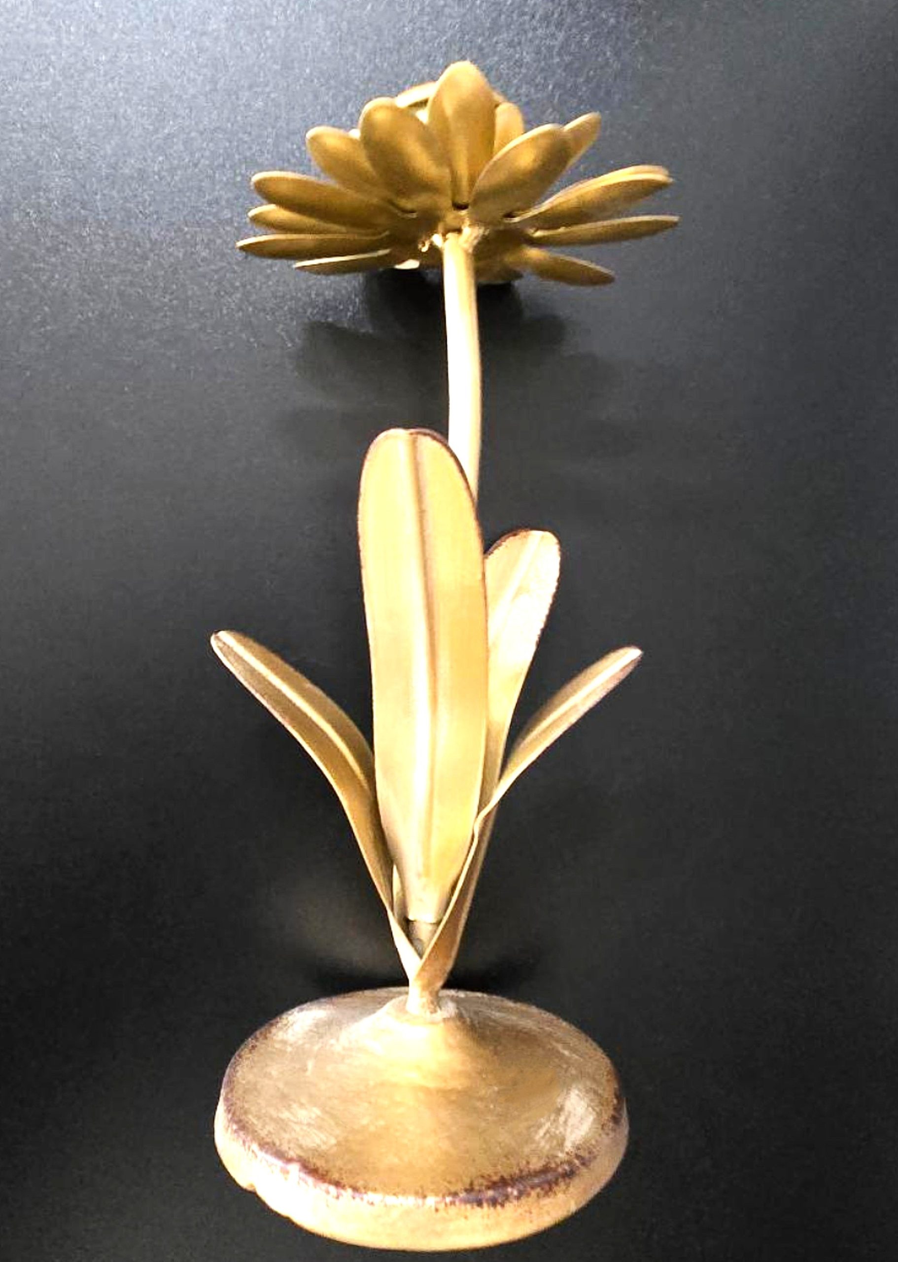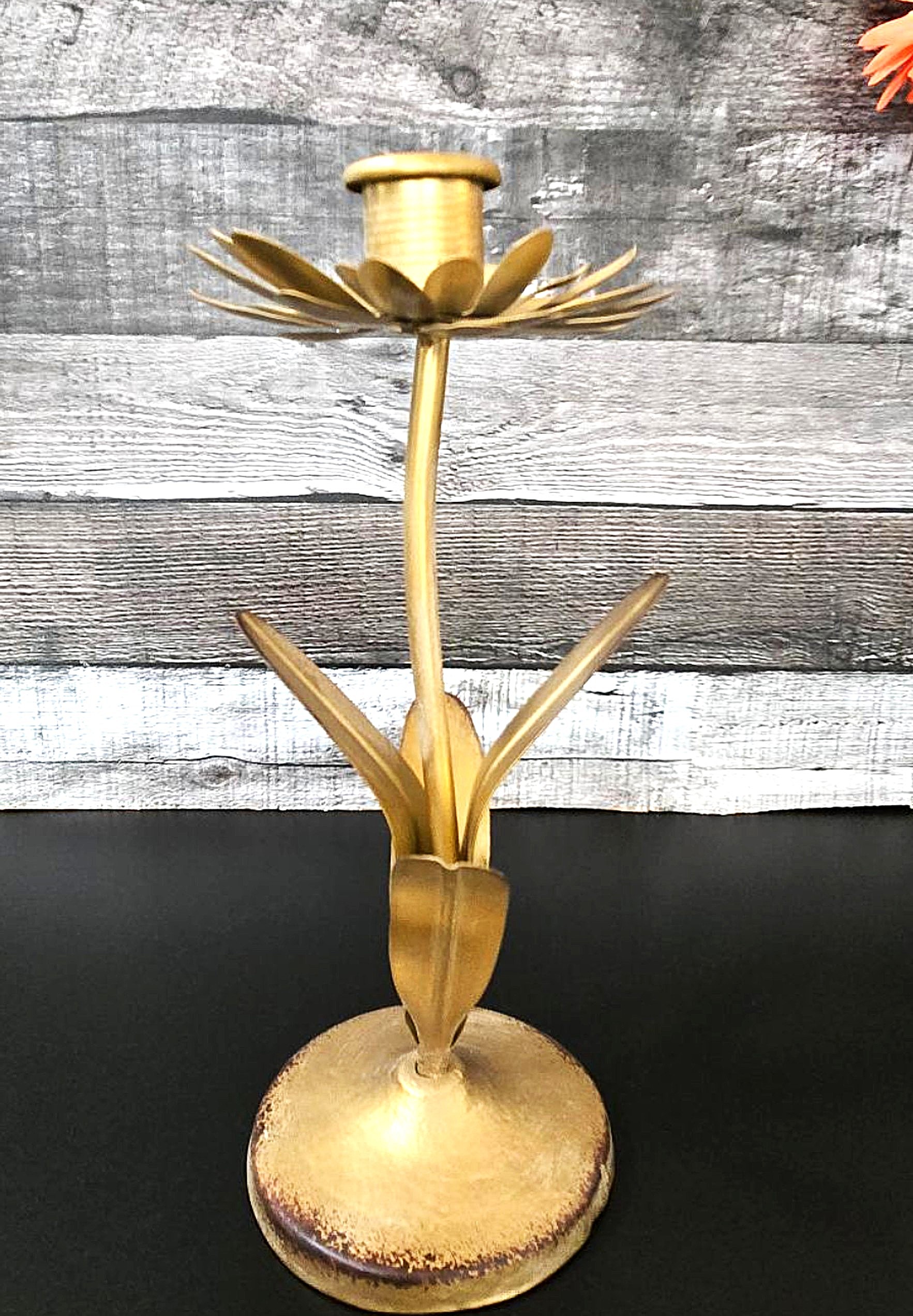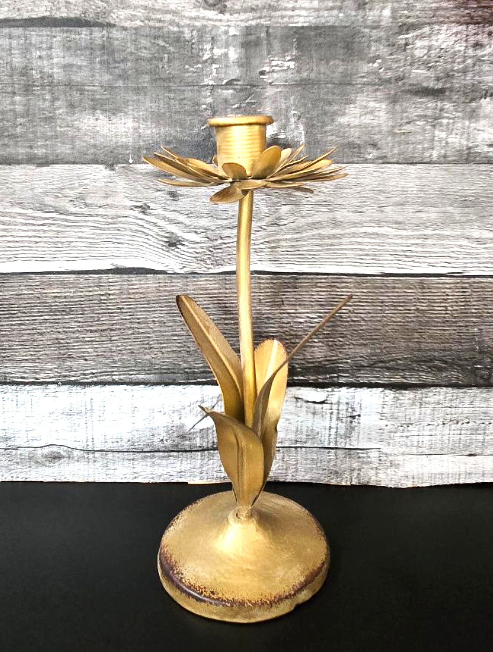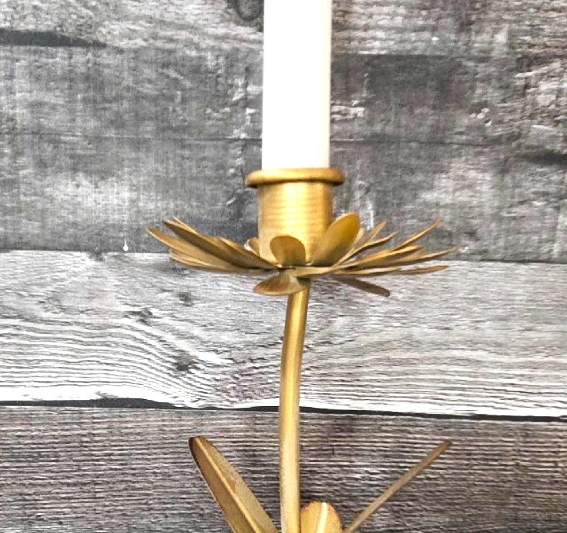 / Gold Metal Flower Tapered Candle Holder