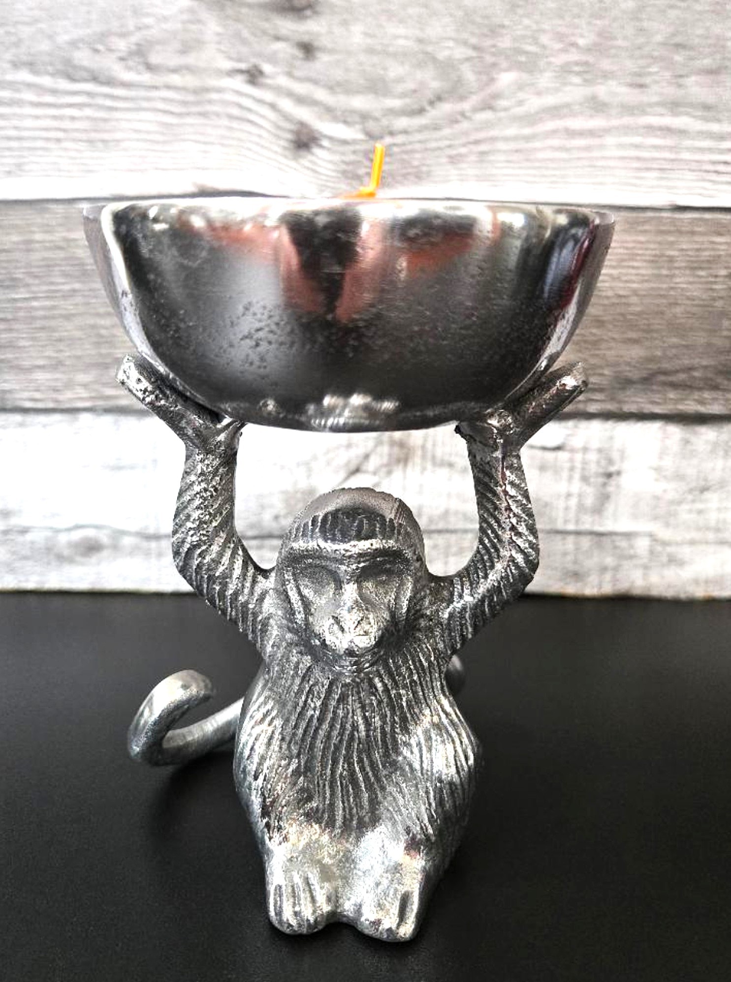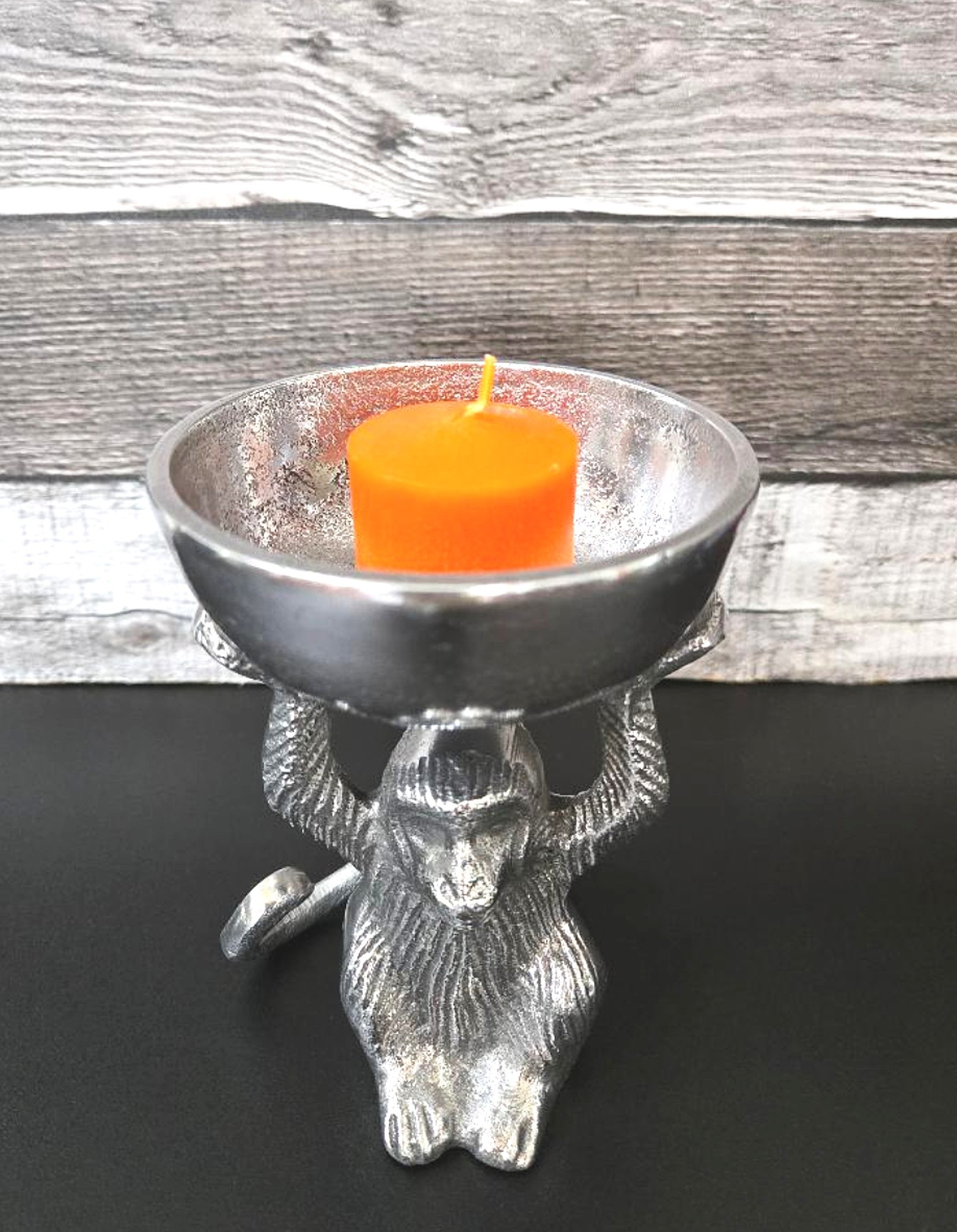 Monkey with Leaf Taper Candle Holder in Highly Detailed Resin