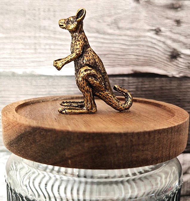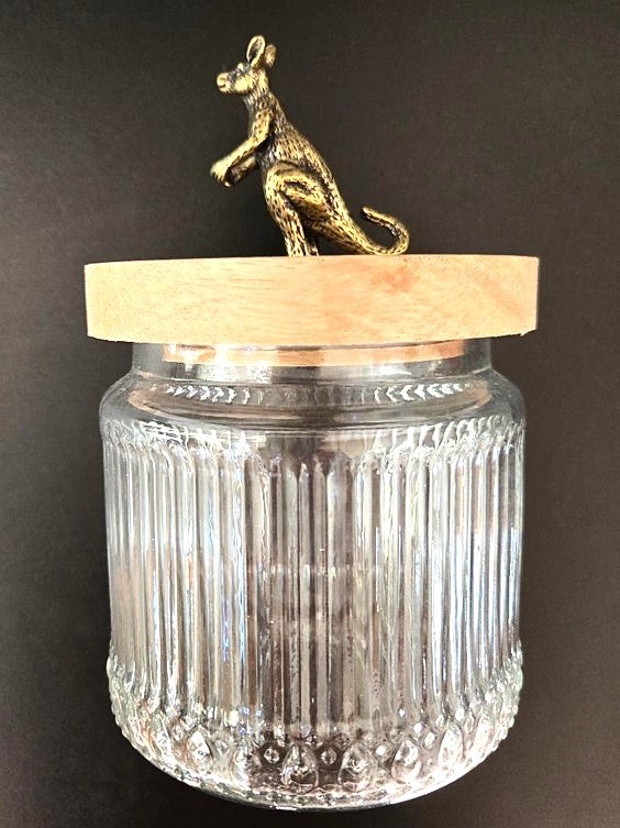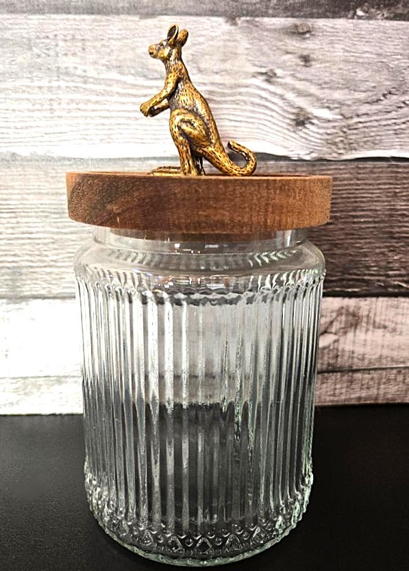 Round Ribbed Glass Jar with Kangaroo on Wood Lid