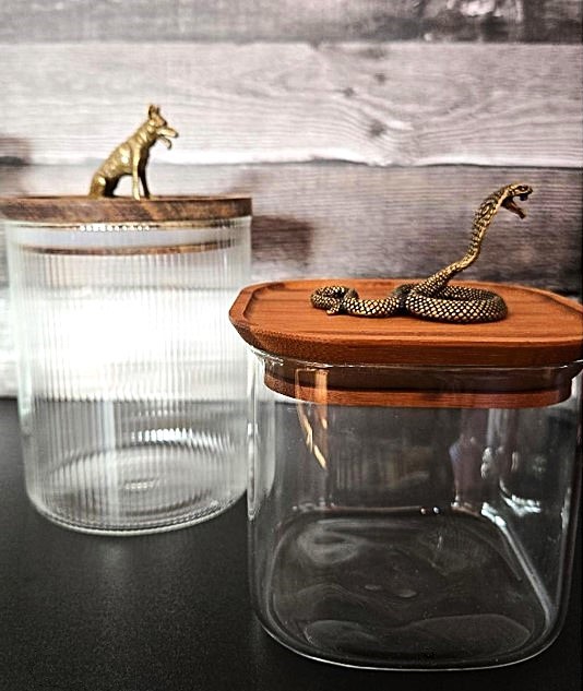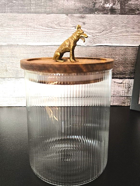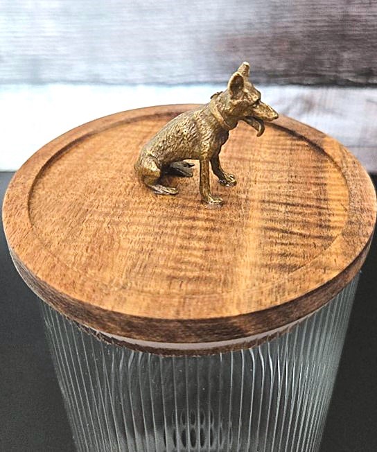 Round Small Ribbed Glass Jar with German Shepherd on Wood Lid
