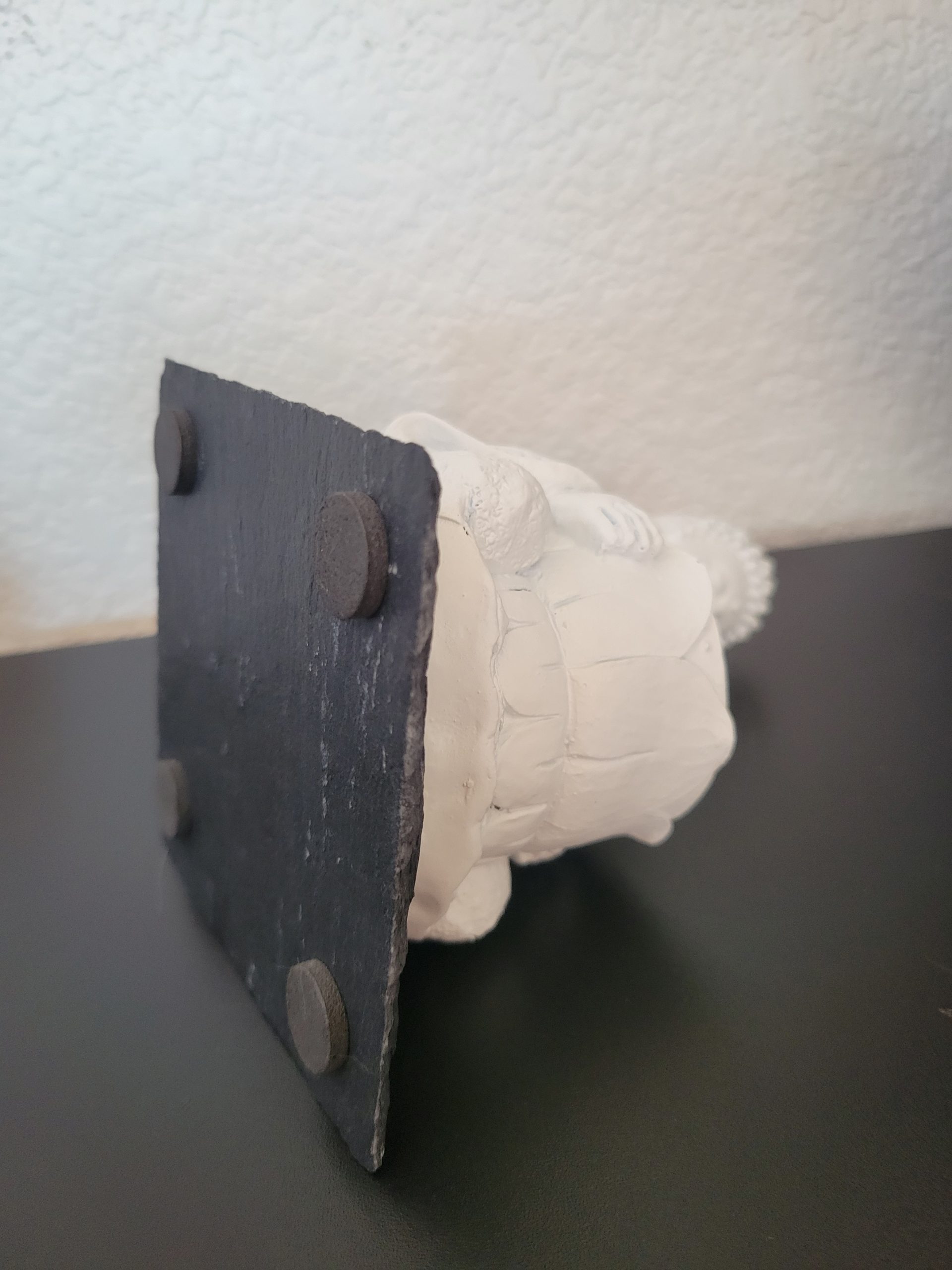This sculpture is made of a type of resin that’s well known for its durability and lightweight properties. Instead of a heavy, expensive concrete statue.