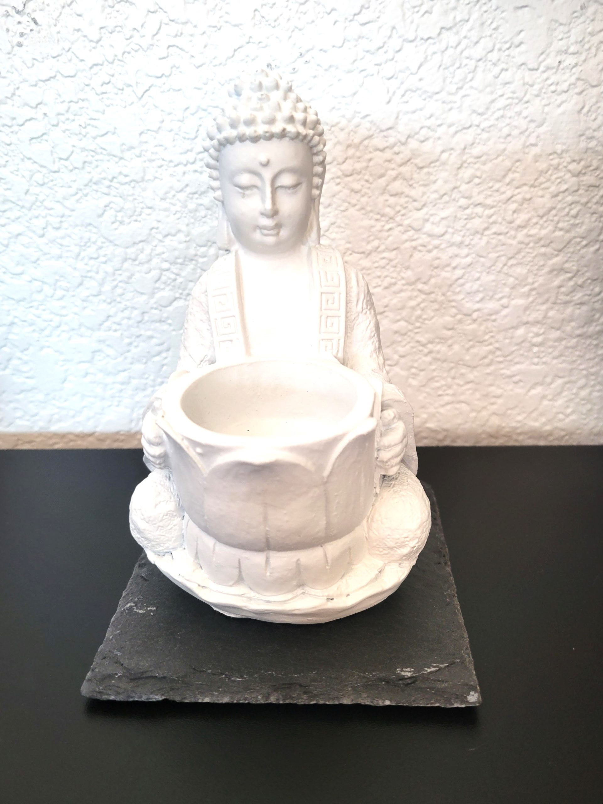 Calming Buddha looks great in your living room, kitchen, office or bedroom.