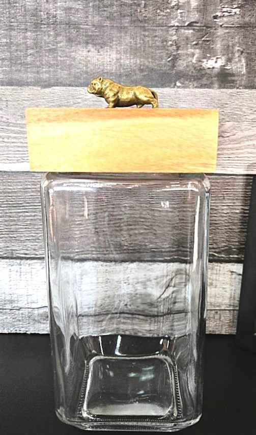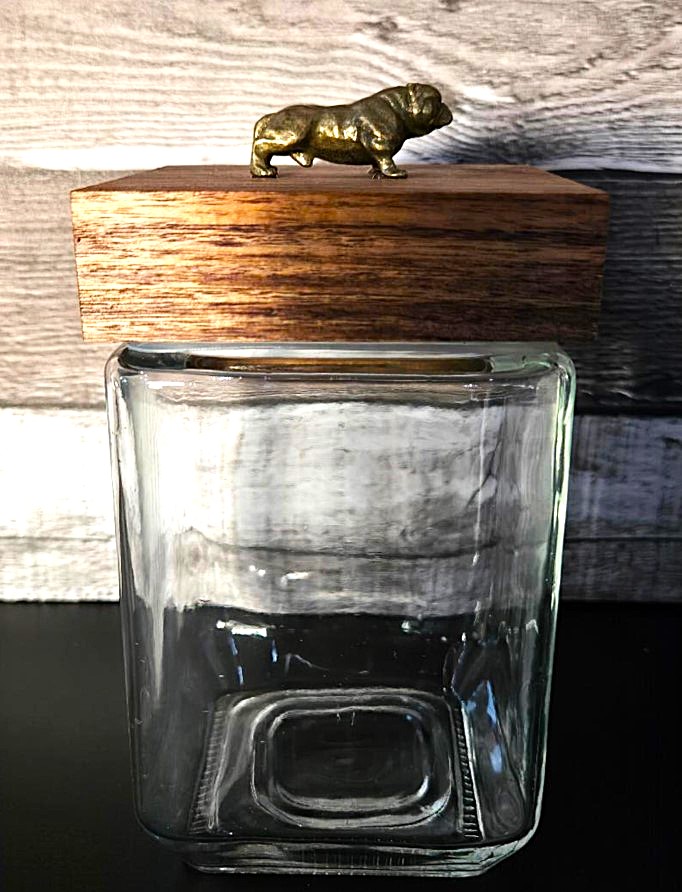 / Square Glass Jar with Bulldog on Wood Lid