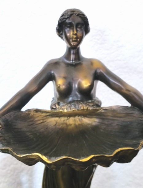/ Woman Holding Clamshell Jewelry Holder