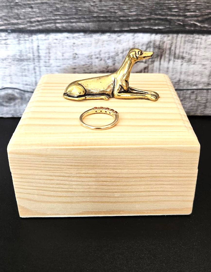 / Wooden Jewelry Box with Magnetic Lid and Greyhound Decoration